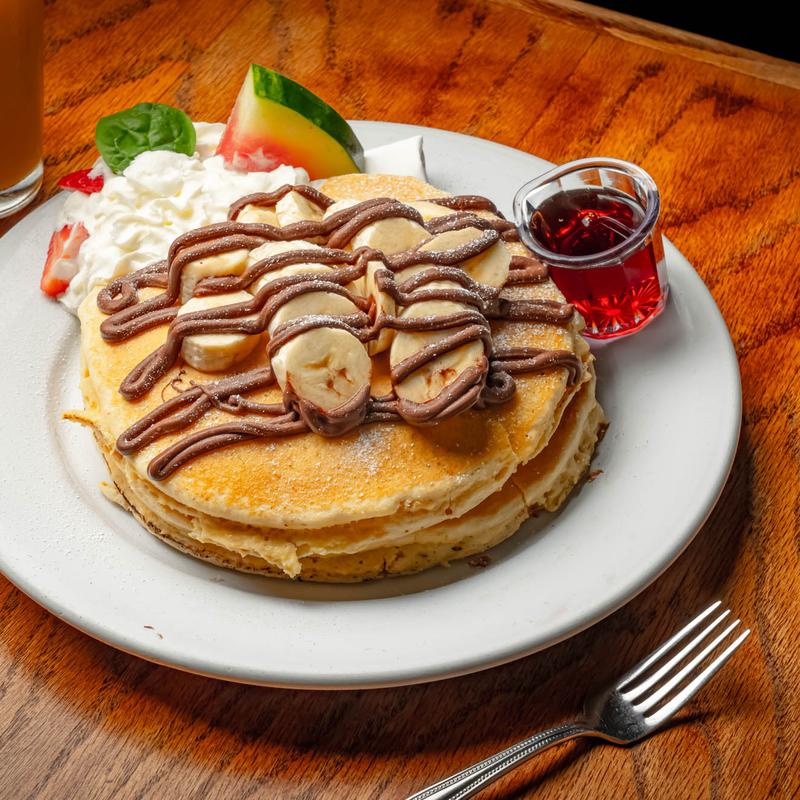 2 Fluffy Pancakes, 2 Eggs your way, your choice of crisp bacon or sausage links, breakfast potatoes or hash browns.
